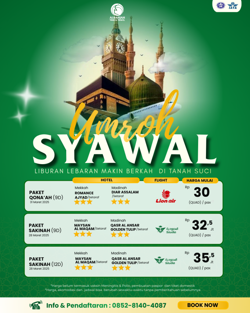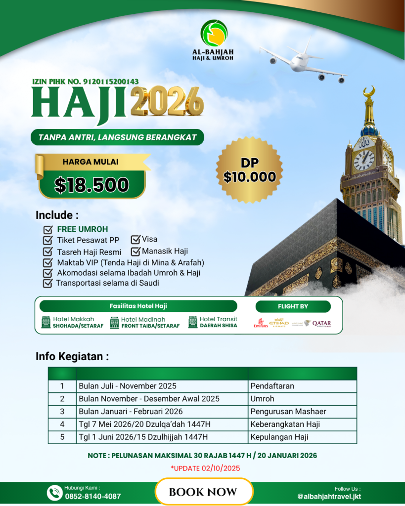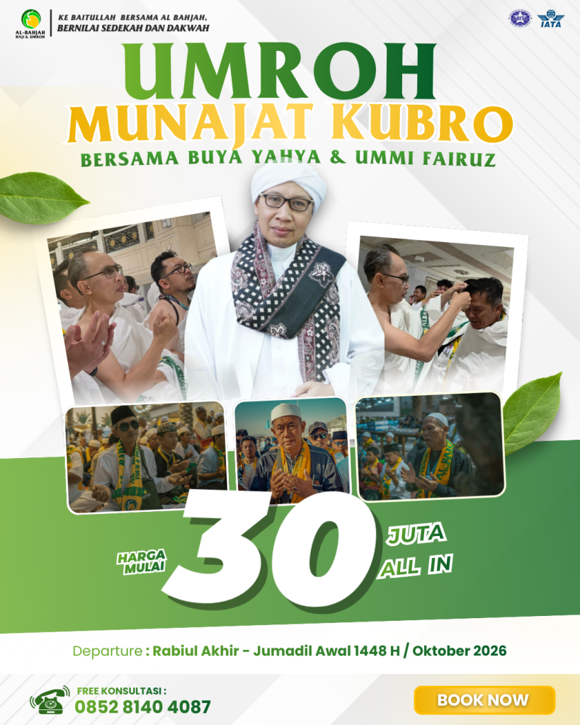 Dapatkan pengalaman perjalanan ibadah umroh dan haji yang nyaman, khusyuk dan sesuai syariat bersama Al-Bahjah Tour & Travel!
